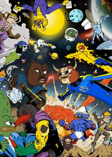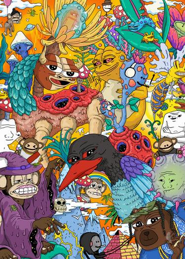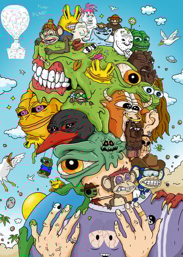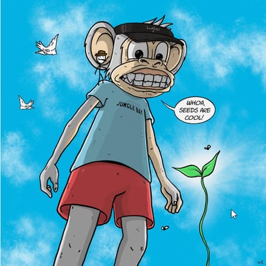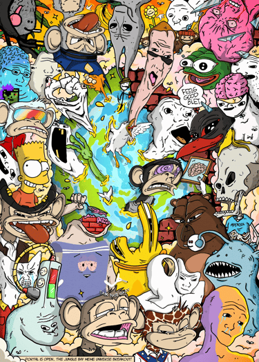 In this crypto novella by Baylor, a young degen wakes up on Jungle Bay Island, trapped in the metaverse. Amidst a civil war of dank memes and mercurial influencers, how will he get back home?